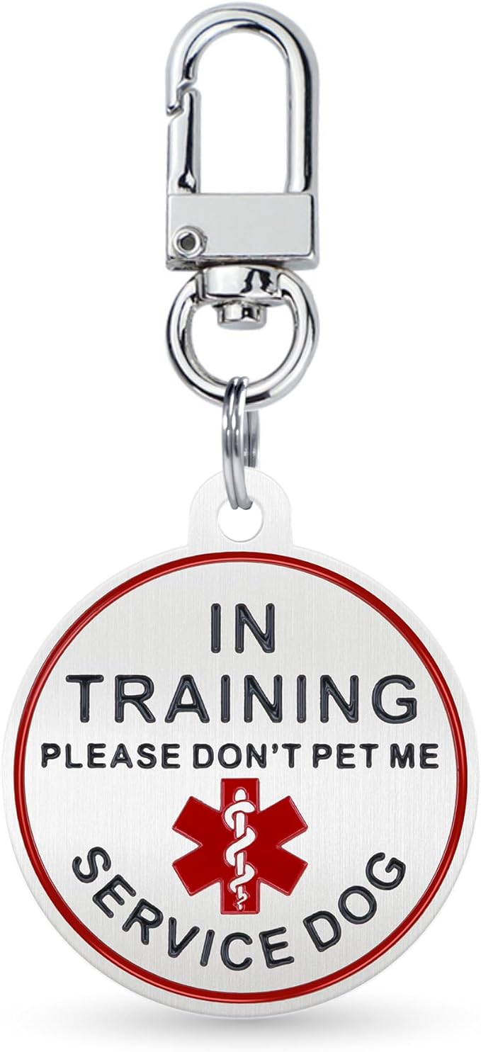 Service Dog ID Tag for Small & Large Dogs - Emotional Support ESA Medical Alert Collar Accessory - Durable Stainless Steel Service Animal Tag - in Traning Service Tag in Silver Large