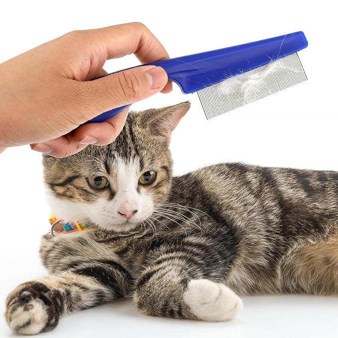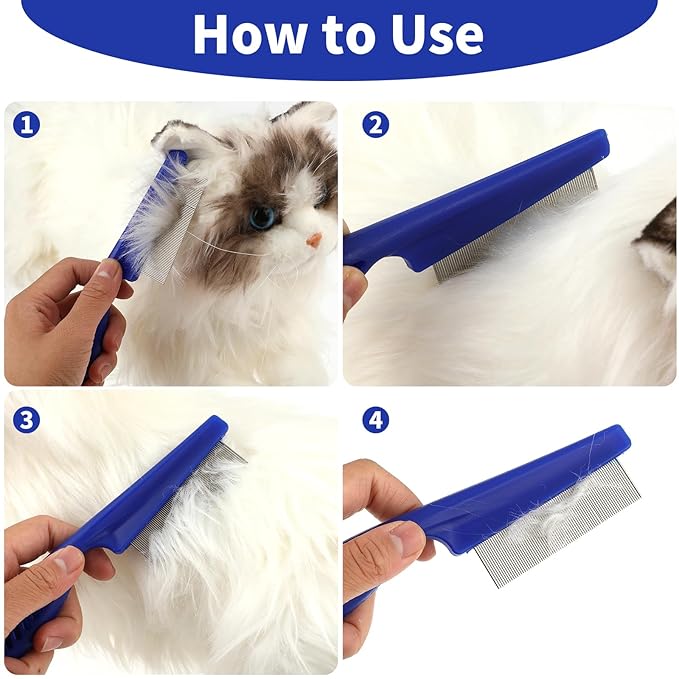 - 【Flea and Tear Stain Removal】Our pet comb is designed to effortlessly remove tear stains, tangled hair, food residue, and even pesky fleas. Its fine-grained comb penetrates deep into your pet's hair, ensuring a thorough grooming session that keeps your pet looking its best. The comb's ergonomic handle provides a comfortable grip for extended use.