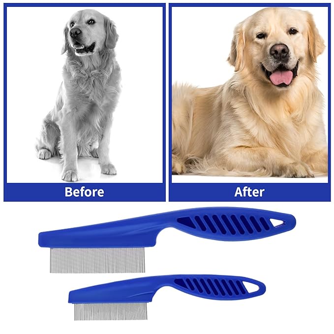 - 【Comfortable & Safe】The rounded pin ends of these two combs are gentle on your pet's skin, providing a comfortable grooming experience while preventing any snagging or potential pet injury. Whether you have a small or large dog, or even a cat, this versatile pet comb is suitable for all sizes and breeds, making it an essential tool for any pet owner striving to keep their furry friends healthy and happy.