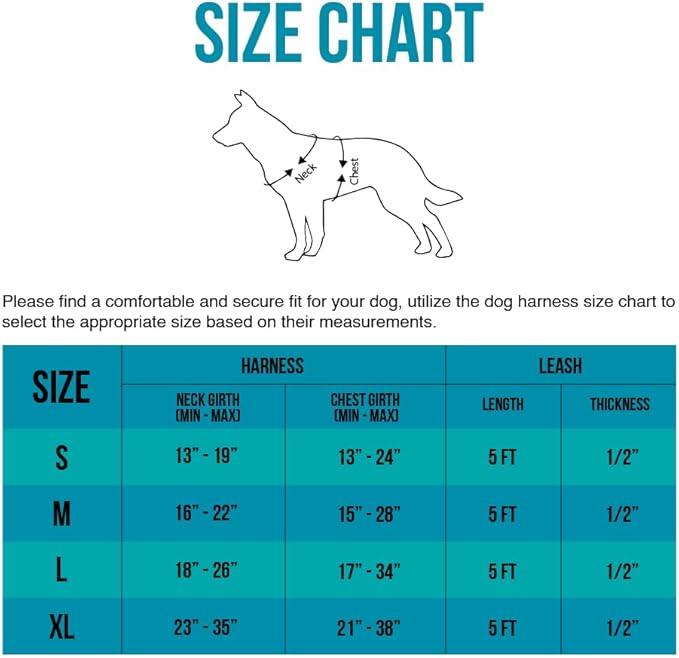 - Complete Set: This set includes a matching leash, so you have everything you need for enjoyable walks with your dog and the harness is available in various sizes to accommodate dogs of different breeds and weights.