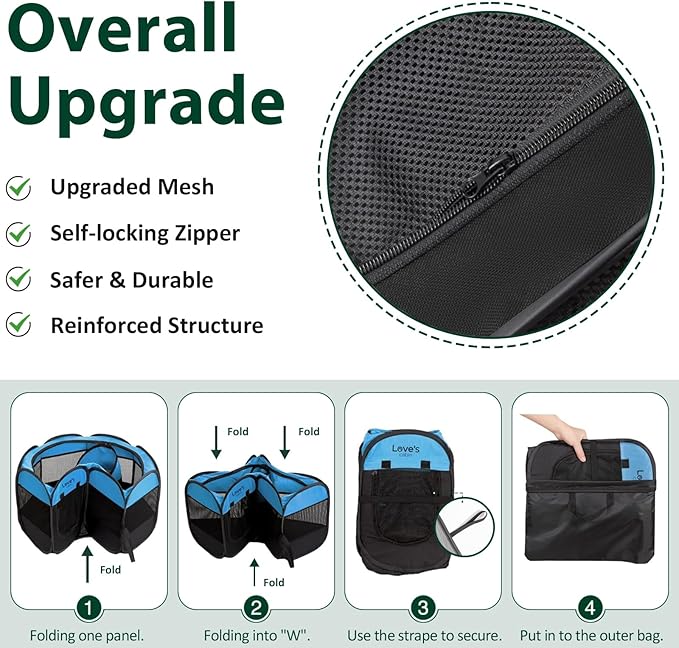 Love's cabin Pet Puppy Dog Playpen, Small Dog Tent Crates Cage Indoor/Outdoor, Portable Playpen for Cat, Foldable Pop Up Dog Kennel Playpen with Carring Case, Removable Zipper Top, Blue