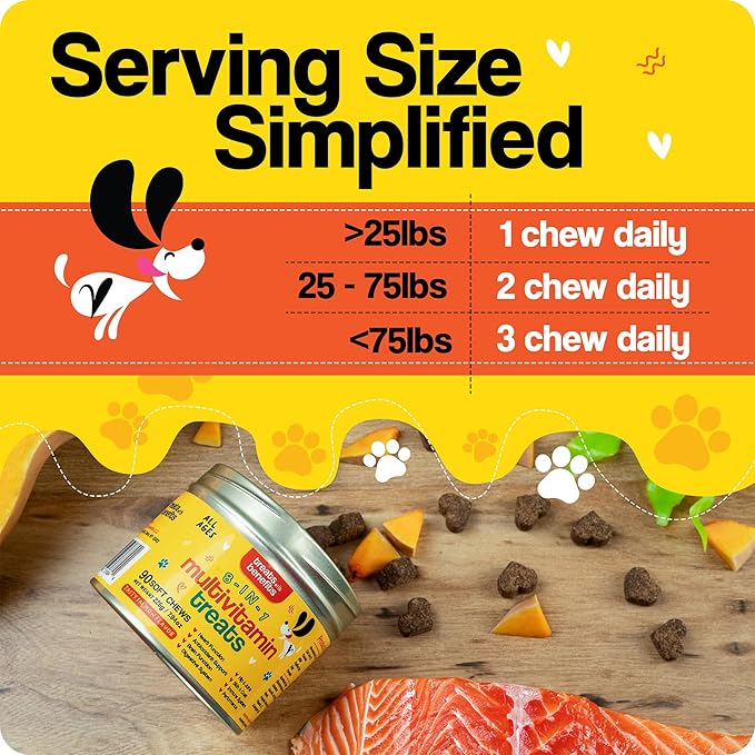 - COULDN'T BE EASIER TO GIVE A DAILY DOSE - Tiny troopers under 25 pounds need just one chew a day, while those weighing between 25 and 75 pounds thrive on two. And for the gentle giants over 75 pounds? Three a day will do the trick. Simple, consistent, and packed with care.