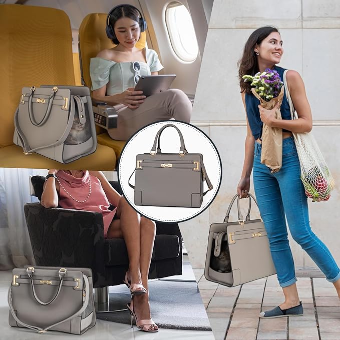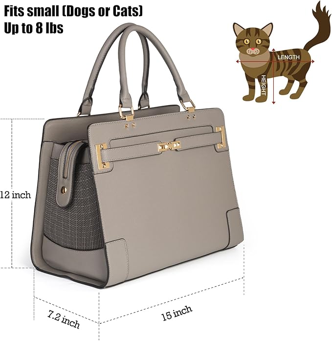 Stylish Pet Carrier Purse Leather Bag for Small Dogs Cats Puppy,Airline Approved Soft-Sided Carriers (Elephant Grey)