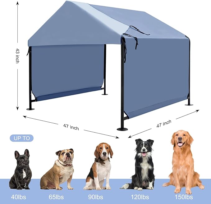 - 🐕🐾 Dimension: Overall Dimensions: 49.2" L x 49.2 W x 43.3" H. Net Weight: 17 Lbs. Easy to move without taking it apart and reassemble. The xlarge pet awning can be used for many large and extra large dogs, such as Boxers, Labradors, or Golden Retrievers even Great Danes, Mastiffs, or St. Bernards.