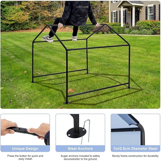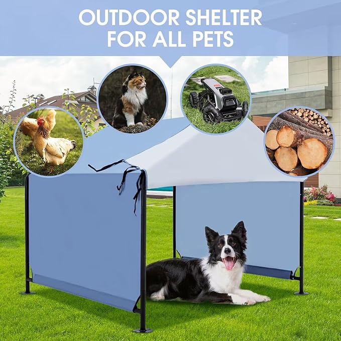 - 🐕🐾 Durable And Sturdy: The dog shelter frame is constructed of high-quality 1" steel and features a premium powder coat finish that protects the dos shade from corrosion, and rust. This ensures that the dog canopy is sturdy enough to withstand any outdoor conditions and will last for years to come.