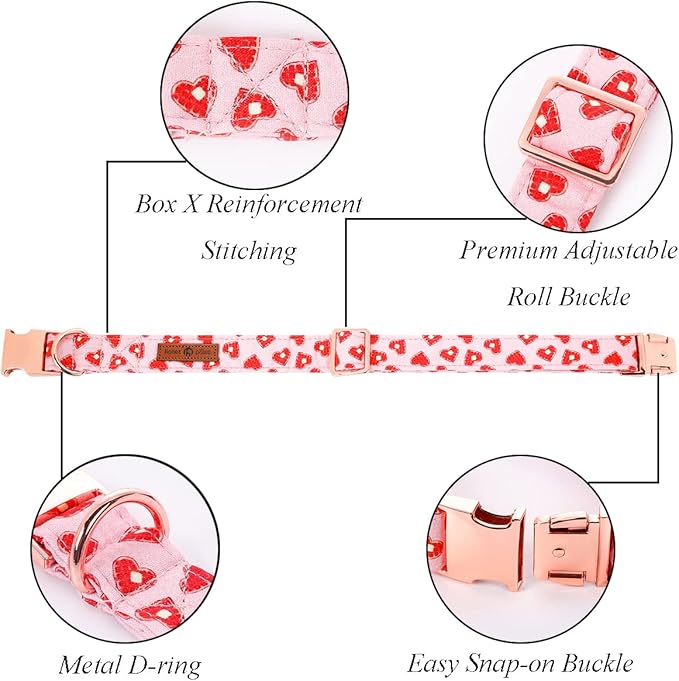 Lionet Paws Valentine Day Dog Collar, Heavy-Duty Cute Red Heart Pattern Collar with Metal Buckle Pet Necklace for Medium Large Dog Gift, Neck 16-24 inches