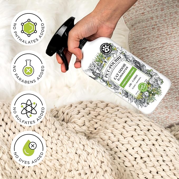 - Instant Freshness, No Lingering Odors: A few sprays of Pourri Purrfectly Bamboo instantly deodorize cat odors, especially strong urine and litter box smells, so your home stays fresh and inviting.