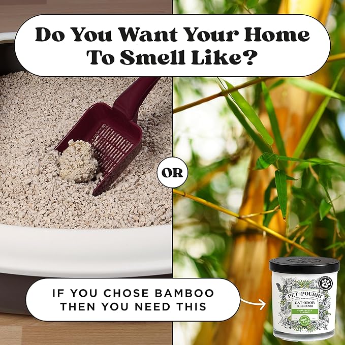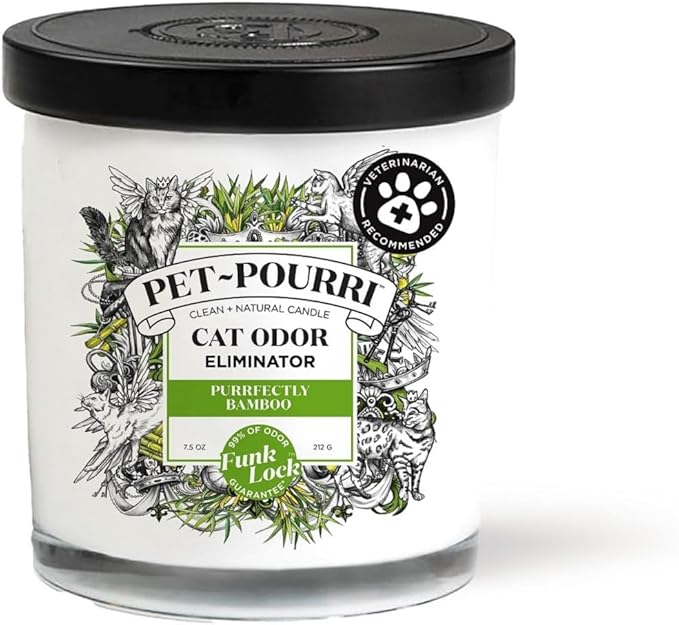Pet-Pourri Purrfectly Bamboo Cat Deodorizer Candle – Cat Safe Plant Based Ingredients & Wax – Vet Approved – Aromatherapy & Air Freshener for Kitty Odor – Scented with Bamboo, Jasmine & Pear