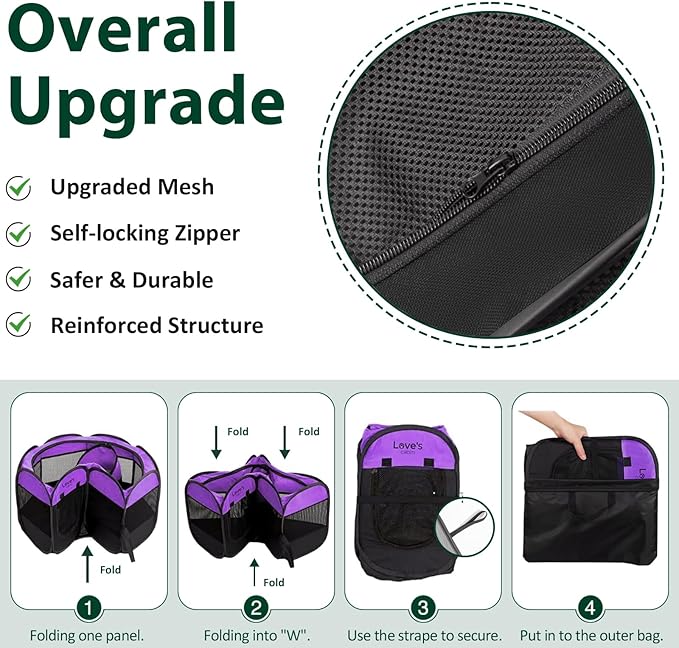 Love's cabin Pet Puppy Dog Playpen, Medium Dog Tent Crates Cage Indoor/Outdoor, Portable Playpen for Dog and Cat, Foldable Pop Up Dog Kennel Playpen with Carring Case, Removable Zipper Top, Purple
