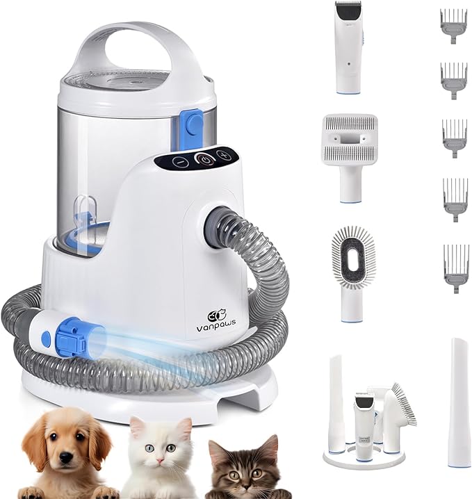 Pet Grooming Vacuum Kit, Dog & Cat Hair Clipper with 13000PA Suction - 3 Adjustable Suction Levels, 5 Grooming Attachments, 2.8L Large Capacity Dust Bin