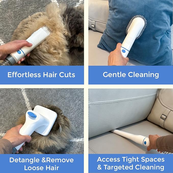 - 【Maximum 13000PA Suction Power】Equipped with a strong suction power of up to 13000PA, allow you to easily trim and clean pet hair, dust, and debris from any surface at the same time, streamlining your pet care routine and cutting down on grooming expenses and time
