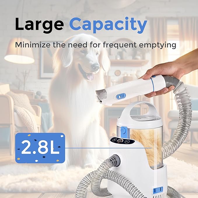 - 【Low Noise & Three Adjustable Suction Levels】With a lowest noise level below 60db, our vacuum ensures a peaceful grooming atmosphere that won't scare your pets. The 3 adjustable suction levels is perfect for sensitive pets, our vacuum works effectively, even on the lowest setting