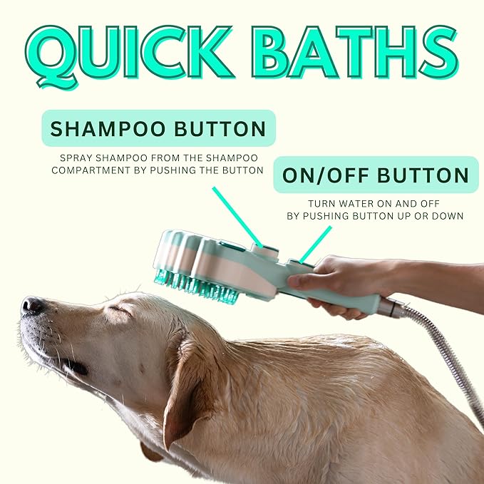Forlina multi-functional dog shower attachment | one handed operation dog shampoo brush with low joint stress | Large