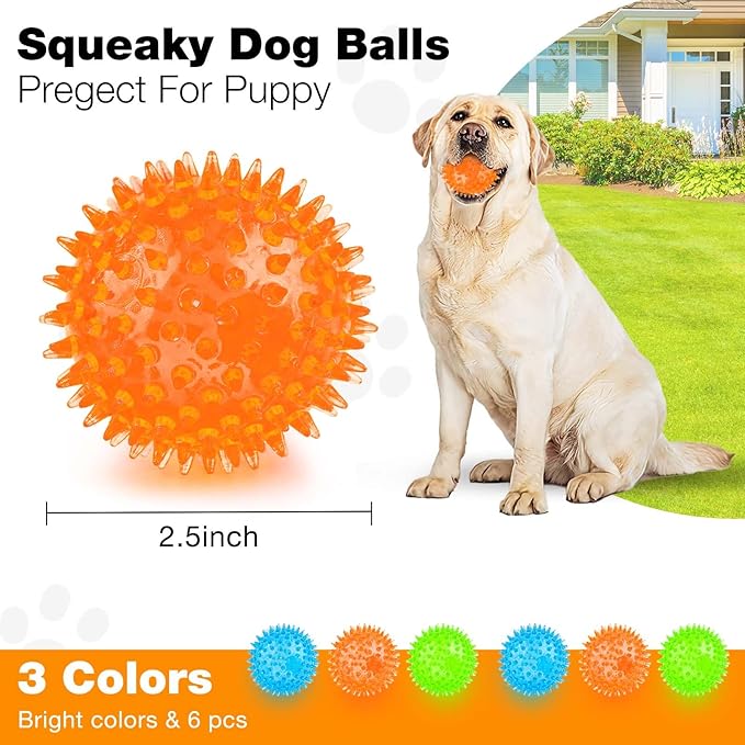 Puppy Toy 2.5” Squeaky Dog Balls Toys and Spikey Dog Ball for Aggressive Chewers for Small Dogs Dog Balls for Clean Teeth and Training (6 Pack