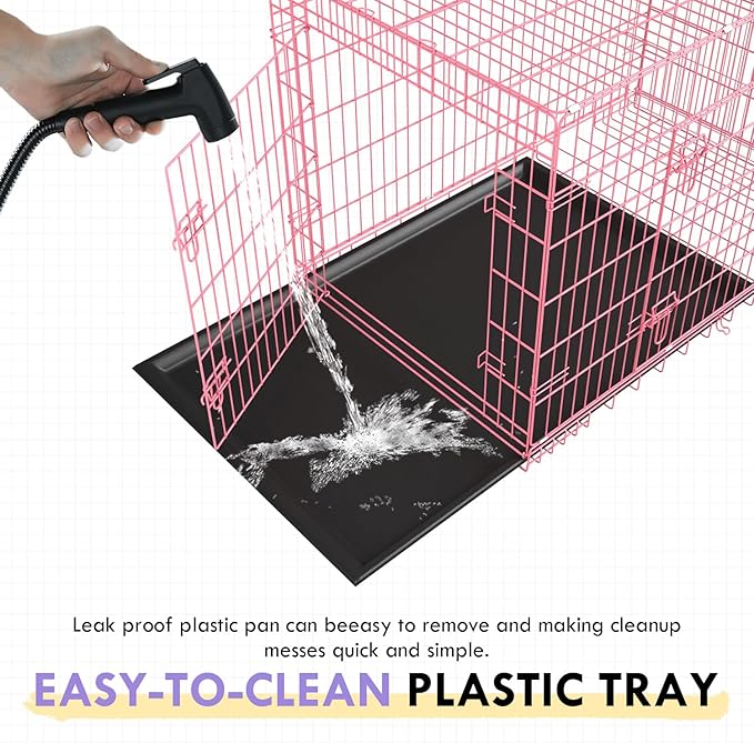 - ❤【EASY TO CLEAN】: The dog cage Includes a durable leak-proof ABS composite tray that will not stain, warp, corrode or retain pet odors. The pet cage bottom pan features an integrated lip around the perimeter, to contain any mess from spilling outside the dog kennel. Dog cage with tray pet crate metal dog cage.