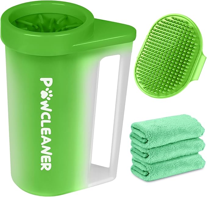 Buddy Muddy Green Pet Foot Cleaner with Handle, Adjustable Bath Brush & Absorbent Towels for Large Dogs