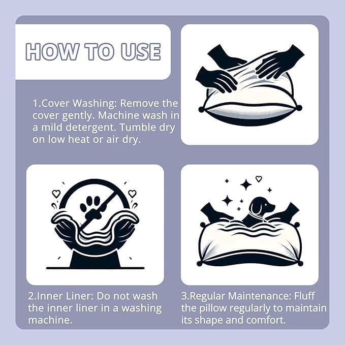 - 【Easy Care for Busy Pet Owners】Understanding the needs of modern pet owners, our dog pillow is fully machine washable for hassle-free maintenance. This dog pillow can be separated from the inner layer (with a protective bag on the inner layer) and the outer layer for easy machine cleaning and reuse, providing a cozy spot for naps and nighttime sleep without added work for you.