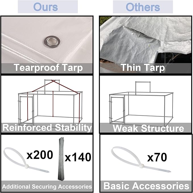 - 【Windproof and Rainproof】The outdoor dog kennel is equipped with a waterproof UV cover on the top that fits perfectly on the roof frame, and the enclosed perimeter provides protection for your pet in all types of weather, including sun, rain and snow. . The cover is designed to withstand harsh environments, ensuring long-term use without tearing or fading, providing your pet with worry-free protection.
