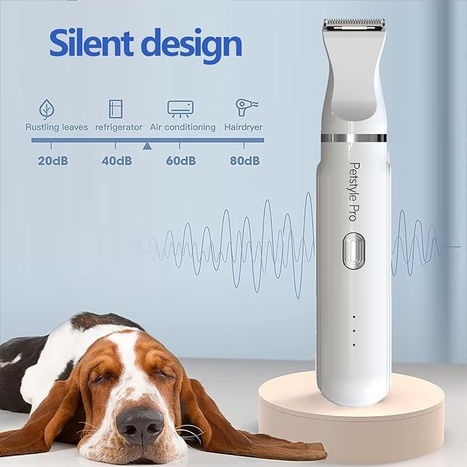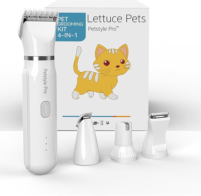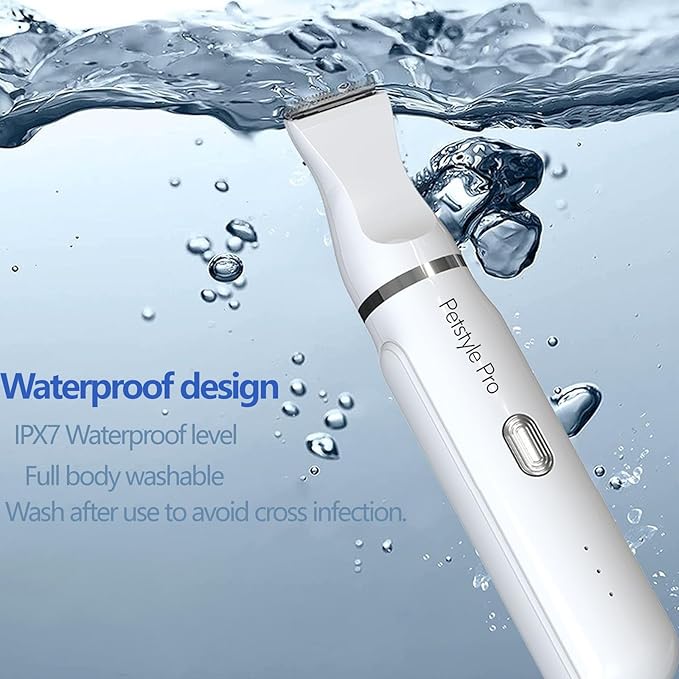 - 【Safety and Multifunctional】: Petstyle Pro 4-in-1 Cordless Electric Clipper will meet all your pet grooming needs. The trimmer heads are made of sharp and safe titanium ceramic blades to ensure durability and safety in use and come with 4 replaceable trimmer heads. Ideal for trimming hair on your pet's paws, eyes, ears, face and buttocks.