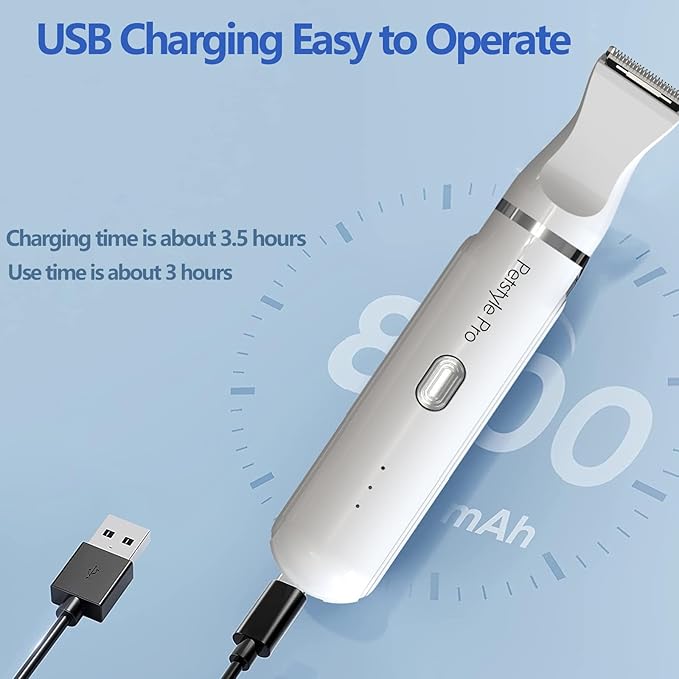 - 【Works Cordlessly】: This pet shaver has a long battery life and a built-in battery rechargeable trimmer for great flexibility. It only needs to be charged for 3.5 hours to last for 180 minutes, which can save the cost of disposable batteries. Cordless trimmers give you the freedom to move in any direction to tackle hard-to-reach spots. It provides long-lasting power for a variety of trims.