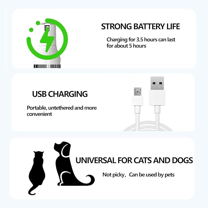 - 【PACKAGE LIST】: You will get a Petstyle Pro Kit which includes a Petstyle Pro Trimmer, Lubricant, Cleaning Brush and USB Charging Cable. Four trimmer heads (one shaving trimmer head, one foot hair trimmer head, one rounding trimmer head, one nail grinding trimmer head), three limiting comb heads (2mm, 3-6mm, 6-9mm), which are used with the limiting comb heads to effectively reserve a safe distance and control the overall thickness of the hair. Newbies don't have to worry about being clueless