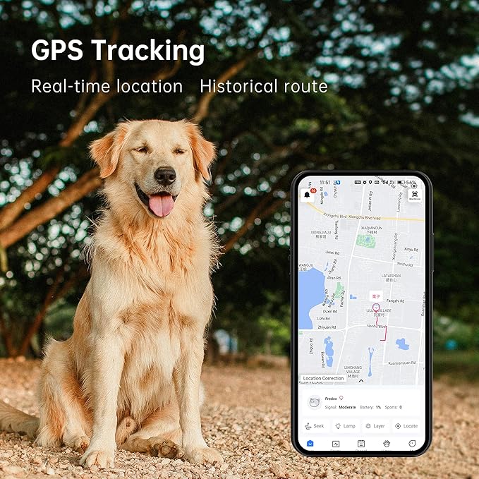 GPS Pet Tracker, Activity Monitor for Dog, Real-Time Location & Escape Alerts & Virtual Fences, No Monthly Fee & Support Multi User Co-Monitoring, Waterproof & Drop-Proof