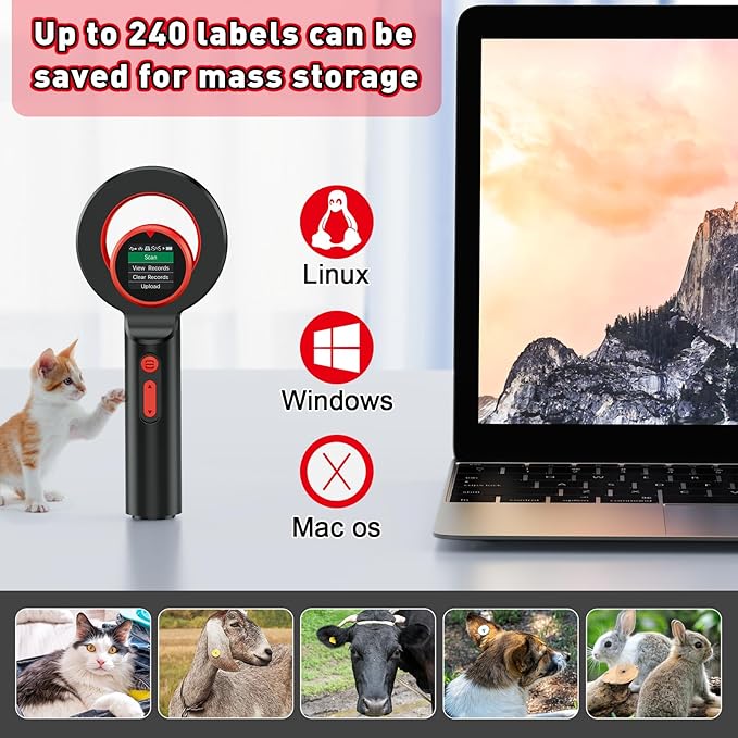 - 🐱[Widely Used and High Capacity: Save up to 240 tag information, and you can upload this information to computer via USB cable. Widely used for animal management, resource management, railway detection, etc. ]