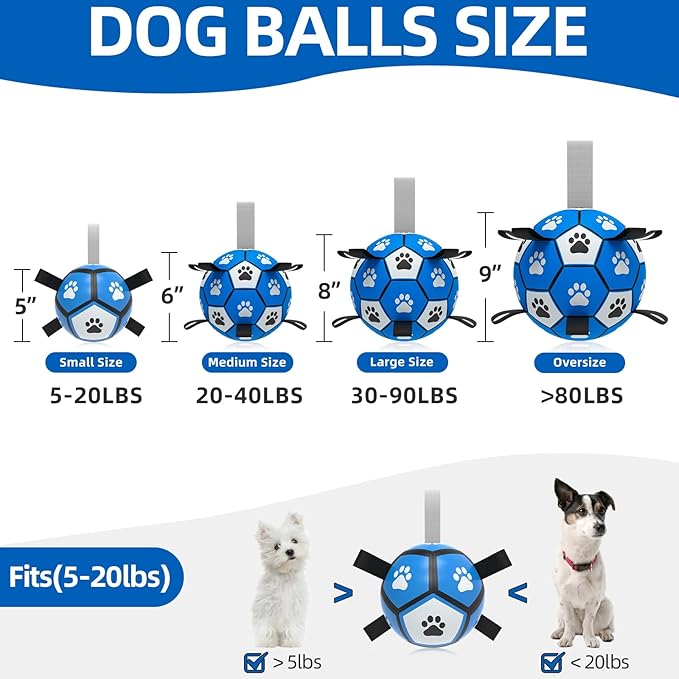 - âš½Durable Dog Ball Toy: Complying with the exact same standard as children's toys, the dog ball is made of premium PU that is the material of standard soccer ball so that it can be kicked and bounced as well. Note, our dog soccer small balls is suitable for 5-30lbs dogs, SMALL DOG PET needs to choose our small one.