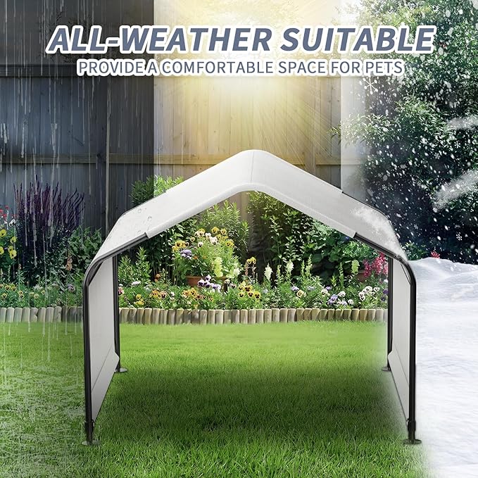 - Easy Assembly: The dog house kit includes all necessary components and ground nails for securing the structure. With easy-to-follow instructions, most people can assemble it in just 15 minutes. The cover slides smoothly over the frame, ensuring a tight fit for maximum protection.