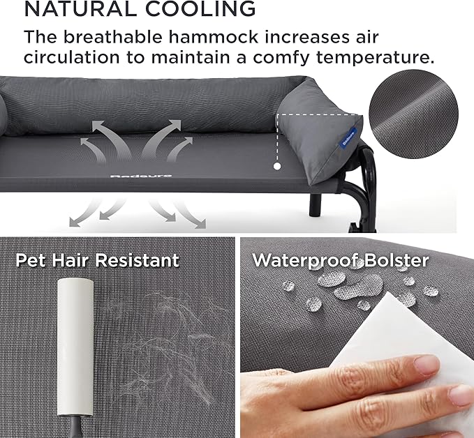 Bedsure XL Elevated Raised Outdoor Dog Bed - Cooling Dog Cot Bed with Bolster for Extra Large Dog, Lifted Pet Bed with Breathable Teslin Mesh, Dog Hammock Bed with Non-Slip Feet, Grey, 42 inches