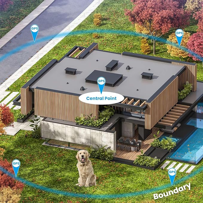- GPS WIRELESS DOG FENCE: Our GPS dog fence utilizes GPS technology to create a virtual boundary for your dog, which allows it to roam freely with the designated area. Require no physical barriers. With the radius can reach up to 2887ft, our wireless dog fence can cover up to 760 acres and offer flexibility, portability, and ease of use compared to traditional fences