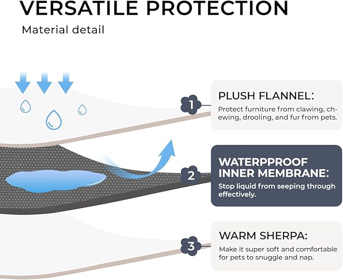 - Furniture Protection: The waterproof and reversible design not only keeps your pet snug but also shields your furniture, including couches, chairs, beds, car seats, and more, from chewing, spills, scratching, and shedding. Safeguard your belongings from those adorable but sometimes destructive little paws, making it an ideal gift for pet owners and their pets.