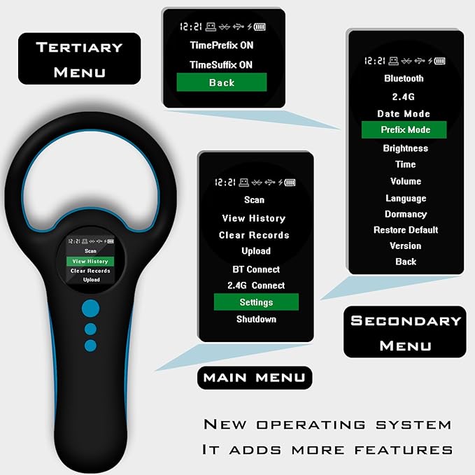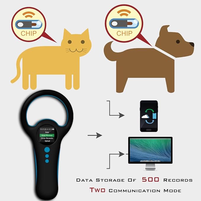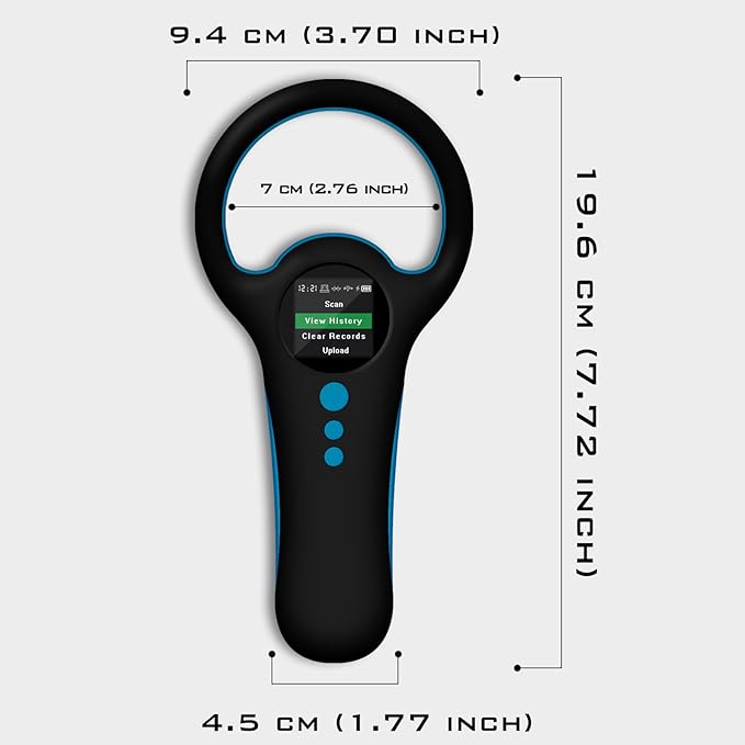 - [Multi-Function In One] - This microchip scanner integrates more powerful functions. There are three levels of adjustable menus. Functions include viewing history, clearing history, uploading data, pairing connections, selecting data formats, adding data time prefixes and suffixes, adjusting screen brightness, adjusting volume (Turn off the sound and no longer disturb animals), calibrating time, setting sleep time, and more.