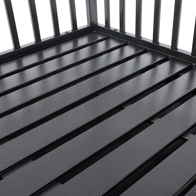 48" Metal Dog Cage with 4 Lockable Casters, Heavy Duty Inoor Dog Kennel with Doors and Roof for Large or Medium Dogs, Black
