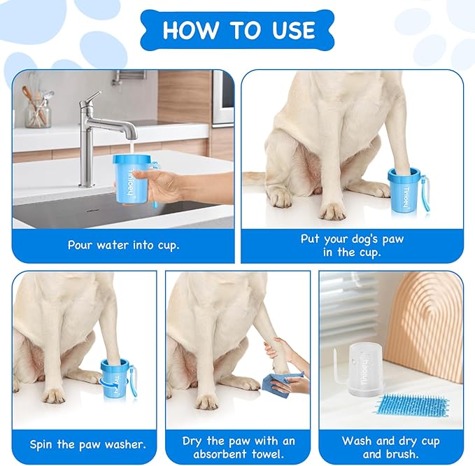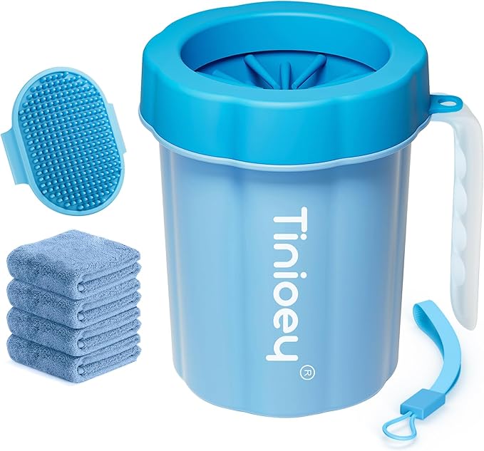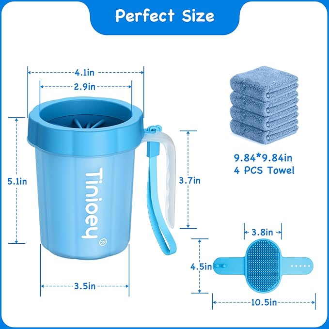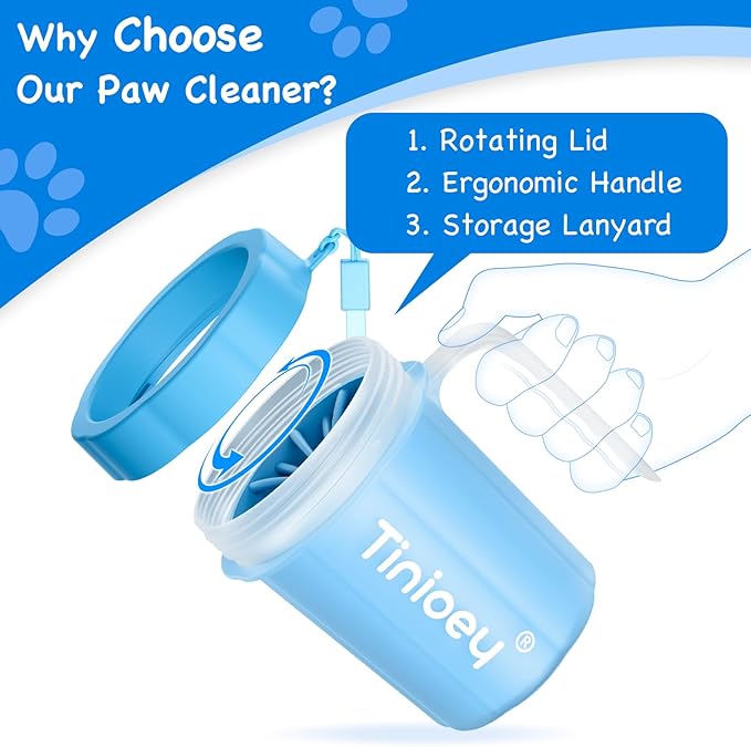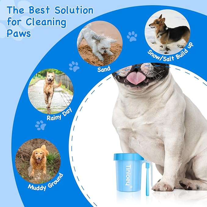 - 【Efficient Cleaning】Tinioey dog paw washer with handle offers a hassle-free solution for keeping your furry friend's paws clean. The innovative design of dog feet cleaner ensures thorough cleaning, removing dirt, mud, and other debris quickly and effectively. Compared with some dog paw cleanser foam, it is more suitable for cleaning a lot of mud on dog paws or dog legs on rainy days or after walking the dog outdoors.