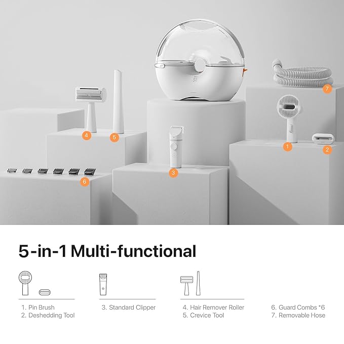 - 【Grooming and Vacuuming in One】Our pet grooming kits feature a built-in vacuum function, collecting 99% of pet hair into a vacuum container. While grooming your pet's fur, the removed loose hair is directly sucked into the vacuum dustbin, preventing any mess and keeping your home clean and tidy.