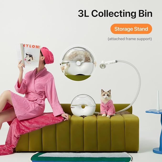 - 【3L Large-Capacity & Easy to Store】The unique rainbow-shaped dustbin offers 3L volume while maintaining a lightweight and compact design. No need to constantly empty hair even when grooming a large-sized dog!