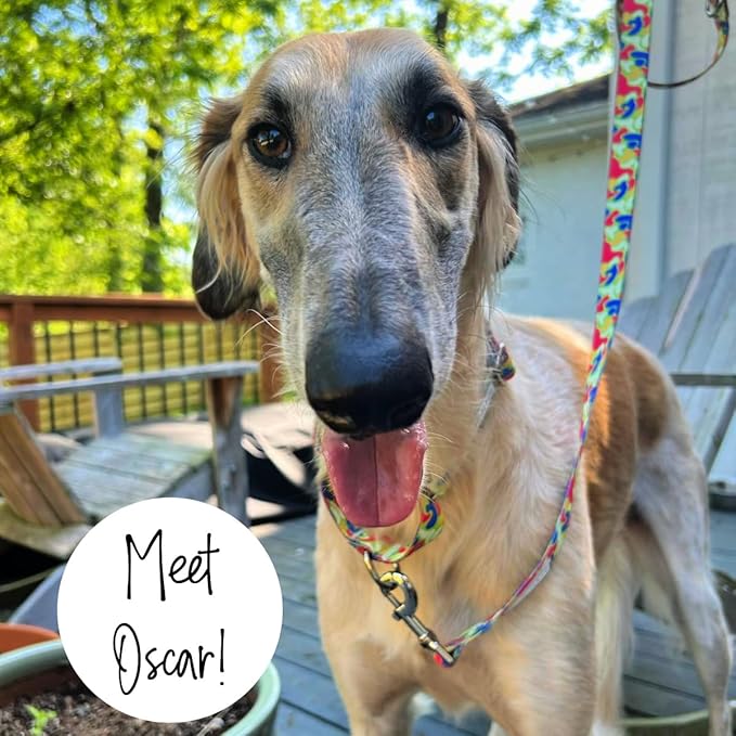 Lucky Love Dog Martingale Collar and Leash Set, Premium No Slip Collar and Leash Set, Colorful Oscar Martingale Collar, Great for Medium Dogs (Oscar, Medium - Combo)