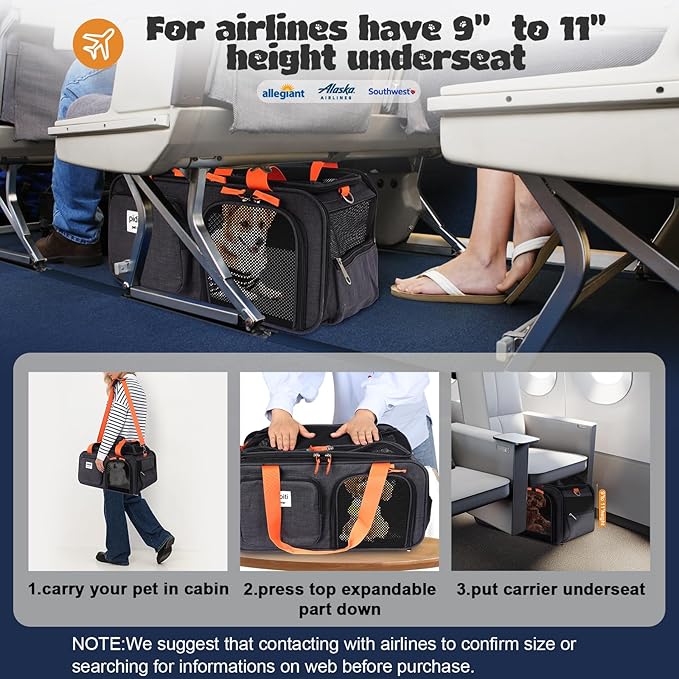 19x13x9 TSA Approved top Expandable pet Carrier for Small Dog Under 13 lbs,Medium cat Under 15 lbs,for Southwest Allegiant Spirit and Other Airlines only Have 9'' or 9.5'' Height Space