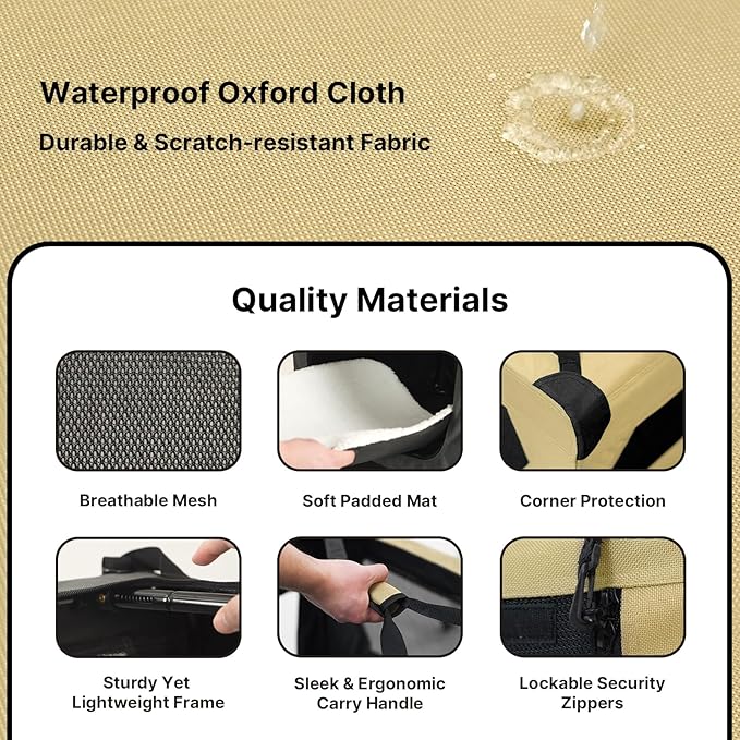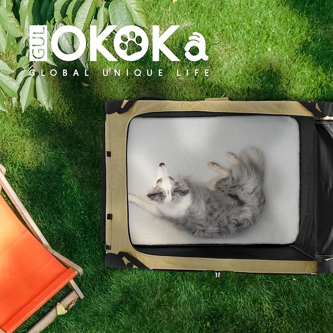- Simple & Clean: This dog crate is designed to make your life easier. It assembles in seconds, folds flat for compact storage, and features water-resistant fabric for easy cleaning. The removable and machine-washable mat keeps things fresh and hygienic.