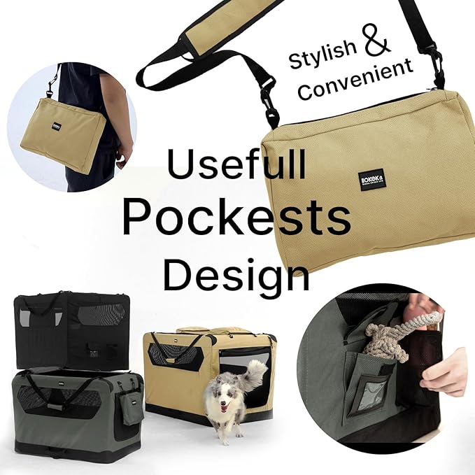 - Safety First: This foldable dog crate is built for peace of mind. The sturdy iron frame keeps its shape. Self-locking zippers prevent escapes, and the high-density mesh provides extra security. The built-in leash adds an extra layer of protection, keeping your furry friend safe and secure.