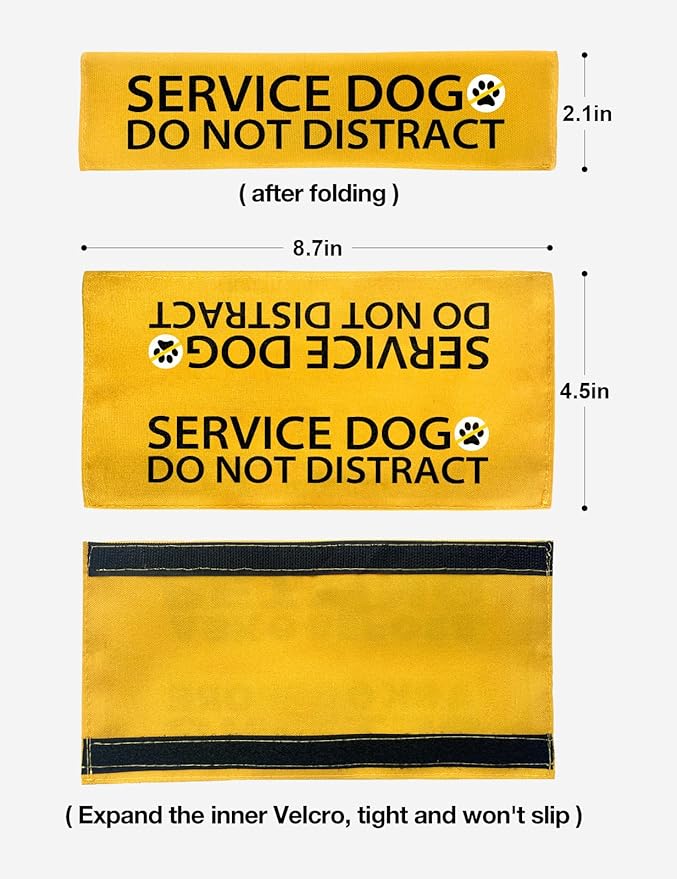 Yellow Service Dog Do Not Distract Dog Leash Sleeve, Funny Service Dog Tags Dog Leash Sleeve Wrap Alert Hanging ID Patch Tag, Pet Dog Birthday Service Dog Leash Gift for Dog Owners