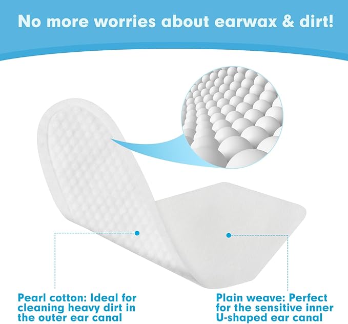 - 【Soft and Effective】:Measuring 5.7" L x 1.8" W, the extended size and pull-tab tail design make it easy to wear and prevent slipping. Made from 100% pure cotton, the soft material is gentle on your pet’s sensitive skin. The dual-sided design caters to different needs: one side features a plain weave for gentle wiping, ideal for sensitive inner ear areas; while the other has a textured pearl pattern for deep cleaning and removing stubborn dirt.