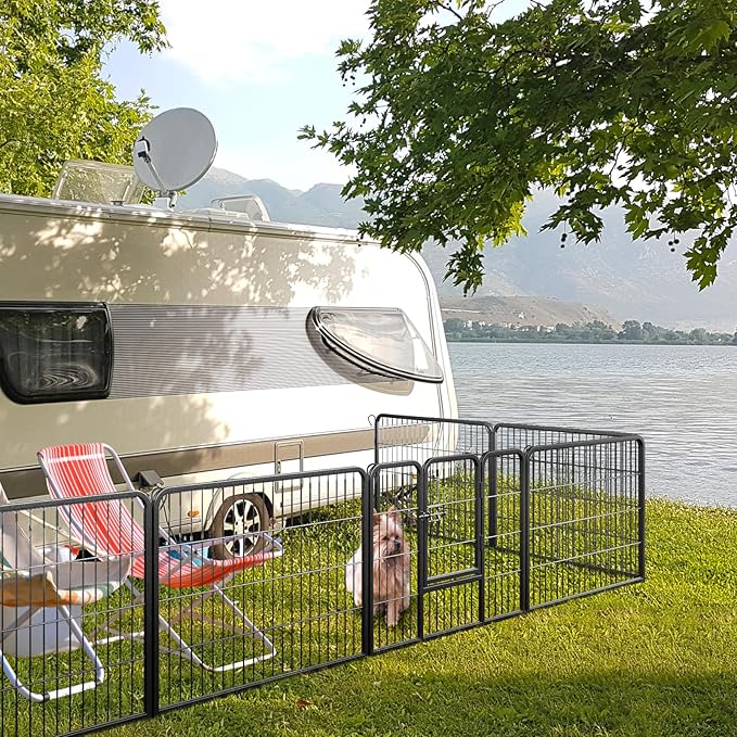 - 【Choose from 3 Sizes for your Convenience】: This 8-panel dog playpen offers a secure and adaptable space for your pets. Opt for the 24" option for puppies and small-sized dogs, the 32" option for small to medium-sized dogs, or the 40" option for medium to large-sized dogs. (Please note that one package contains 8 panels of fencing).
