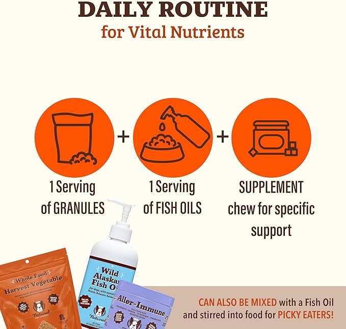 - PAIR WITH OUR FISH OIL FOR OPTIMAL NUTRIENT ENHANCEMENT: Transform your dog's health with a daily serving of granules added to one of our fish oils, ensuring your pup is in peak condition. Elevate your dog’s health with the perfect daily duo of granules and fish oil, delivering every essential nutrient needed. Simply add your dogs daily dose of the granules and the oil to their normal meal.
