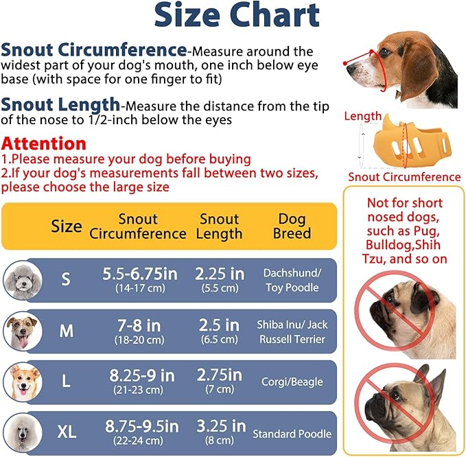 - Ultra-Breathable Muzzle-Designed with all-around air holes, this cage muzzles for dogs to avoid making your dog unable to breathe or even overheating occasions. This no bark muzzle allows your dog's nose to be exposed to the air and freely stick out its tongue, making it easier for dogs to breathe, yawn, drink, and eat.