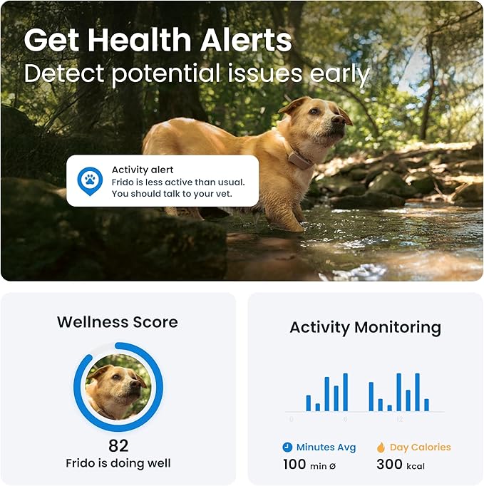 - HEALTH ALERTS & BARK MONITORING: Your dog GPS monitors and tracks your dog's sleep and activity patterns, and if they are barking more or less than usual—you'll get an alert if we detect something out of the norm.