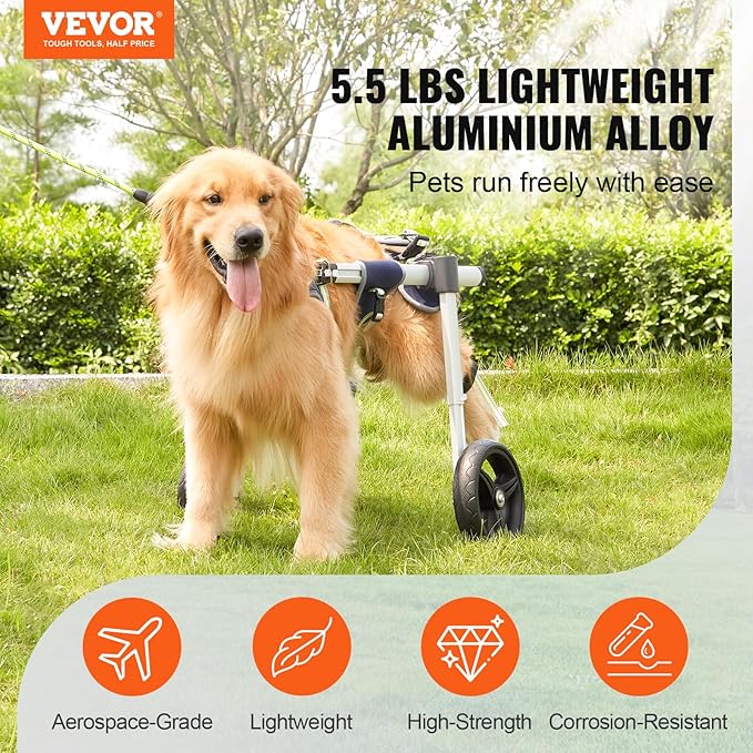 VEVOR 2 Wheels Dog Wheelchair for Back Legs