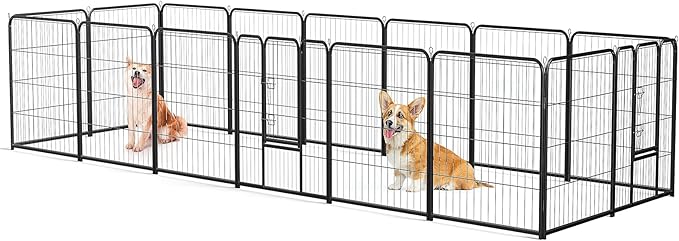 - 【Tailored Options for Every Pet】 Available in 8-panel and 16-panel, with 3 kind of heights: 24”, 32”, and 40”. Our diverse selection ensures a perfect fit for dogs of all sizes and accommodates various pets, such as kitten, cats, rabbits and so on, providing a reliable and comfortable space for all. And it’s easy to assemble this foldable metal dog pen according to the desired area of use.