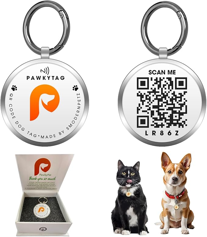 - EASY TO USE DESIGN - Set up in just 3 minutes with no app or subscription needed. This durable QR code tag, with a sturdy zinc alloy buckle, attaches to your pet's collar, harness, or handle in seconds, providing a reliable and convenient identification solution.